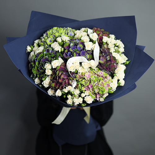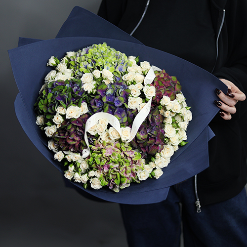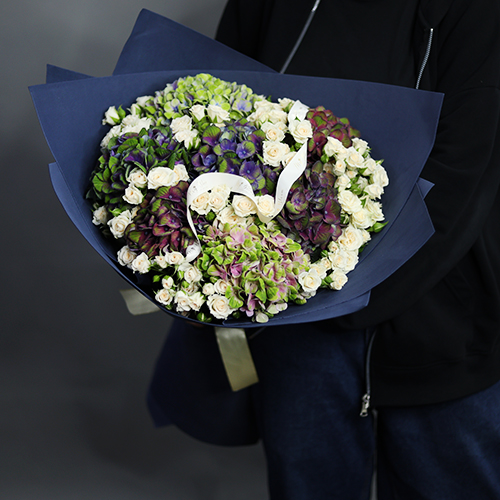 Букет "Галактика" из Голландских гортензий и кустовых роз