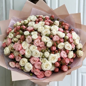 Букет из 35 кустовой пионовидной розы Бомбастик микс