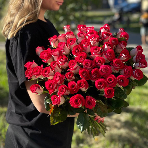 Букет из 51 рубиновой розы (50 см)